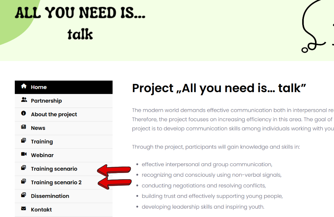 All educational materials developed within the Erasmus+ project “All you need is… talk” no. 2023-3-PL01-KA153-YOU-000172584 can now be found on our website under Training Scenario.